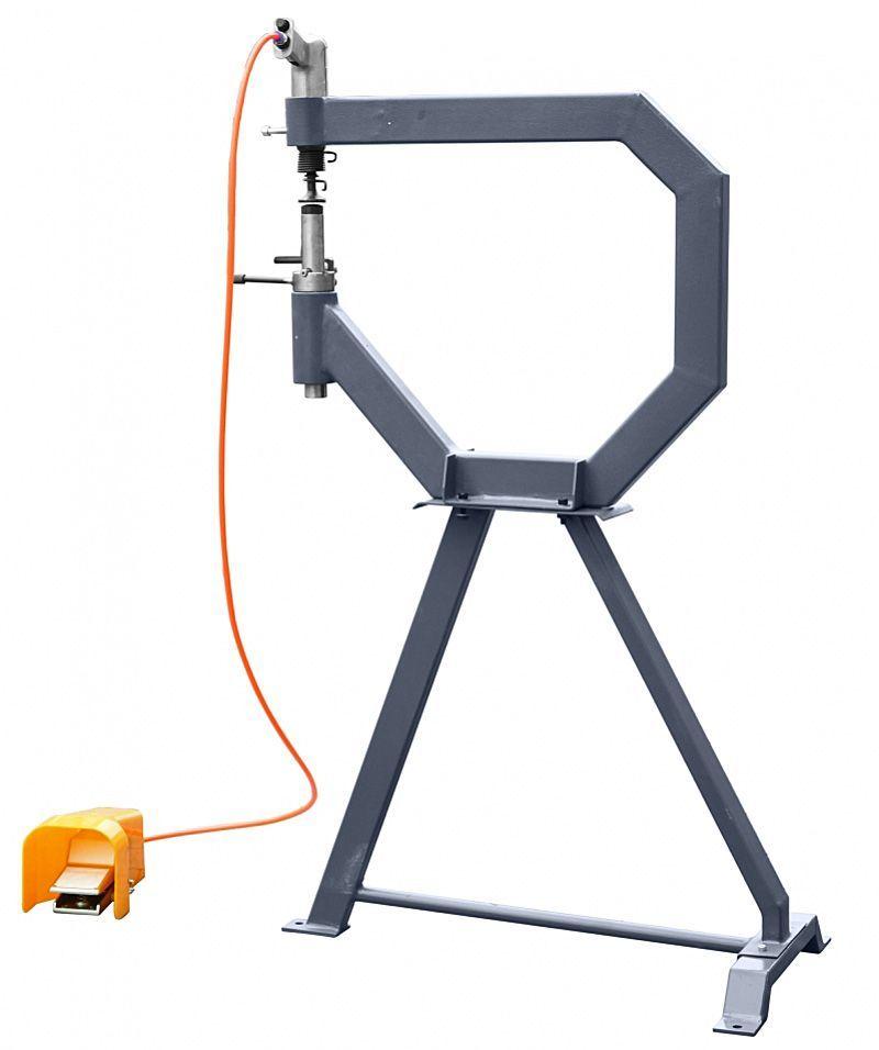 Лист металу затискається між ударним молотком і ковадлом. Компресор подає повітря в пневмокамеру, яка приводить в рух молоток. Той, у свою чергу, з великою частотою б’є по заготовці, а майстер вручну направляє деталь.