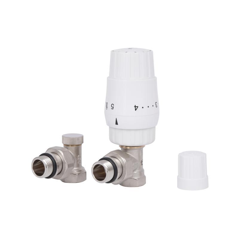 | Комплектація | Термостатична головка, кран термостатичний кутовий 1/2", кран запірний вентиляльний кутовий 1/2" |